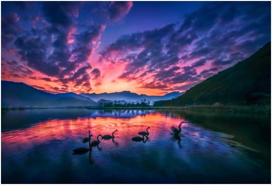落霞与孤鹜齐飞,秋水共长天一色。(摄影 李永鑫)
