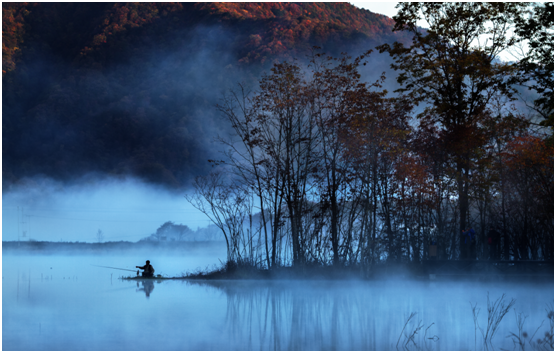 一曲高歌一樽酒,一人独钓一江秋。(摄影 黄盛明)