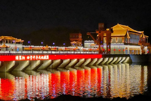 汉江明珠夜映红,飞歌流韵悦金秋。夜晚的新集水电站美如一幅画卷。每一束光、每一道浪,都是对祖国华诞的深情颂歌!(张照泽供图)