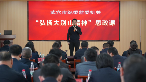 近日,武穴市纪委监委机关以“弘扬大别山精神 锻造铁军担使命”为主题,开展“弘扬大别山精神”思政课活动。该市纪委监委机关及余川镇全体干部共100余人,在红色文化浸润中接受思想淬炼,在精神传承中凝聚奋进力量。
