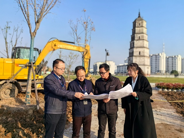 湖北省应城市纪委监委紧盯关键环节、重点对象,加强对文物修缮保护、文物保护利用、文物保护工程项目情况的日常监督。图为该市纪检监察干部在文峰塔生态修复工程项目实地走访了解情况。王异 摄