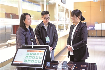 安徽省泗县纪委监委把严防公款吃喝、餐饮浪费等作为落实中央八项规定精神的重要内容,深入机关食堂开展监督检查,引导党员干部带头绷紧勤俭节约之弦。图为该县纪检监察干部向食堂工作人员了解有关情况。张雨婷 摄