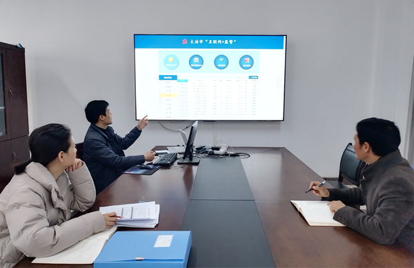 图为大冶市纪委监委深化运用“互联网+监督”平台,不断开发建立新的数据对比模型,围绕各类资金的发放精准发现问题。
