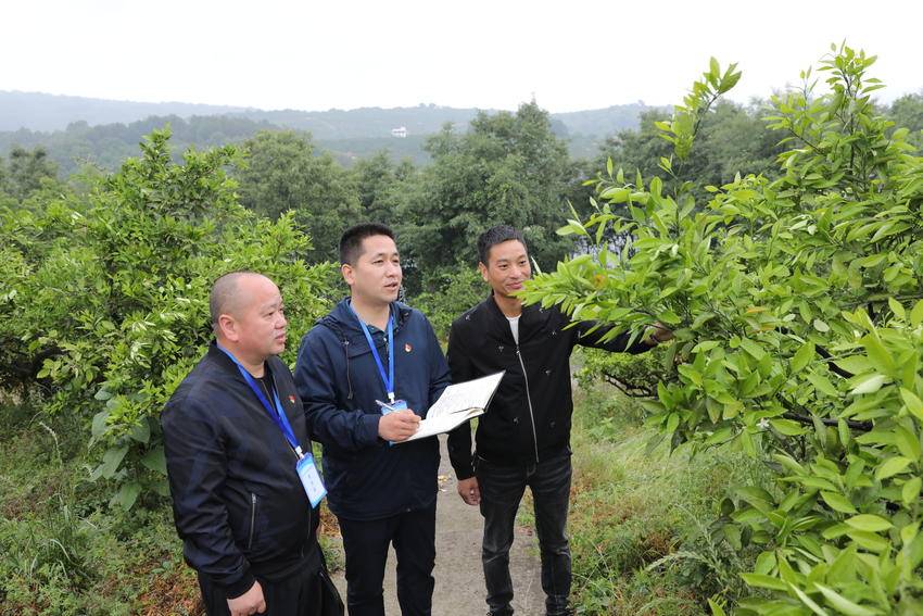 丹江口市深入推进对村巡察工作,巡察干部深入柑橘种植基地,向果农详细了解惠农补贴发放、技术帮扶等政策落实情况,实地查看柑橘长势与产业基础设施,确保乡村振兴政策在基层落地见效。图为巡察组在凉水河镇江口村柑橘基地了解有关情况。(丹江市口纪委监委供图)