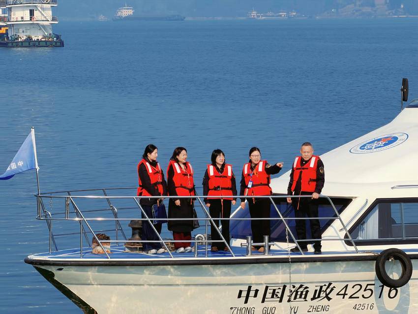 秭归县纪委监委紧盯政治监督,将长江“十年禁渔”作为重要抓手,联合渔政执法部门开展水上常态化巡查。图为该县纪检监察干部与渔政执法人员一同乘船,在重点水域检查禁渔措施落实情况。(秭归县纪委监委供图)
