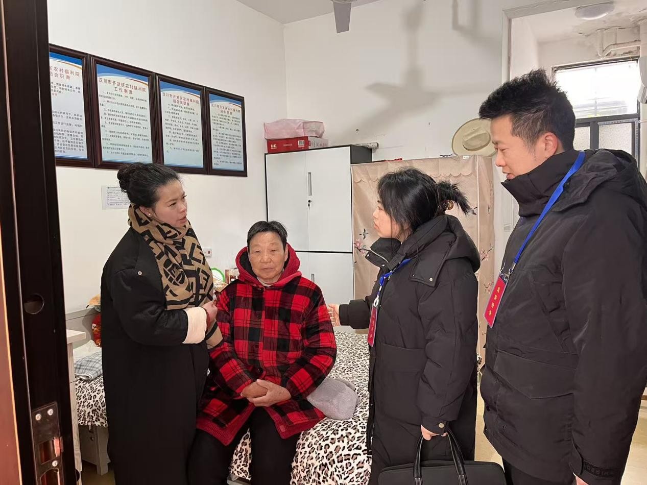 汉川市纪委监委紧盯社会救助领域,采取“大数据比对 +大脚板摸排”方式,精准筛查异常数据,现场走访核查情况,确保惠民资金精准滴灌、不漏一户。图为该市纪委监委派出第七纪检监察组干部到开发区民乐福利院,向老人了解救助政策落实情况。